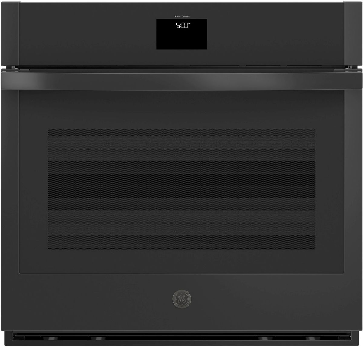 GE® 30" Black Single Electric Wall Oven features No Preheat Air Fry, True European Convection, Anywhere control with remote notifications, Remote Monitored Temperature Probe, Self-Clean with optional Steam Clean, Never scrub, heavy-duty racks, Hidden backlit LCD control, 10-pass hidden bake element, and 8-pass broil element.Read More
