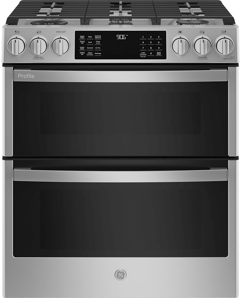 This slide-in gas range has a capacity of 6.7 cubic feet. The oven has no-preheat Air Fry technology, self-cleaning and steam cleaning options, as well as convection cooking.Read More
