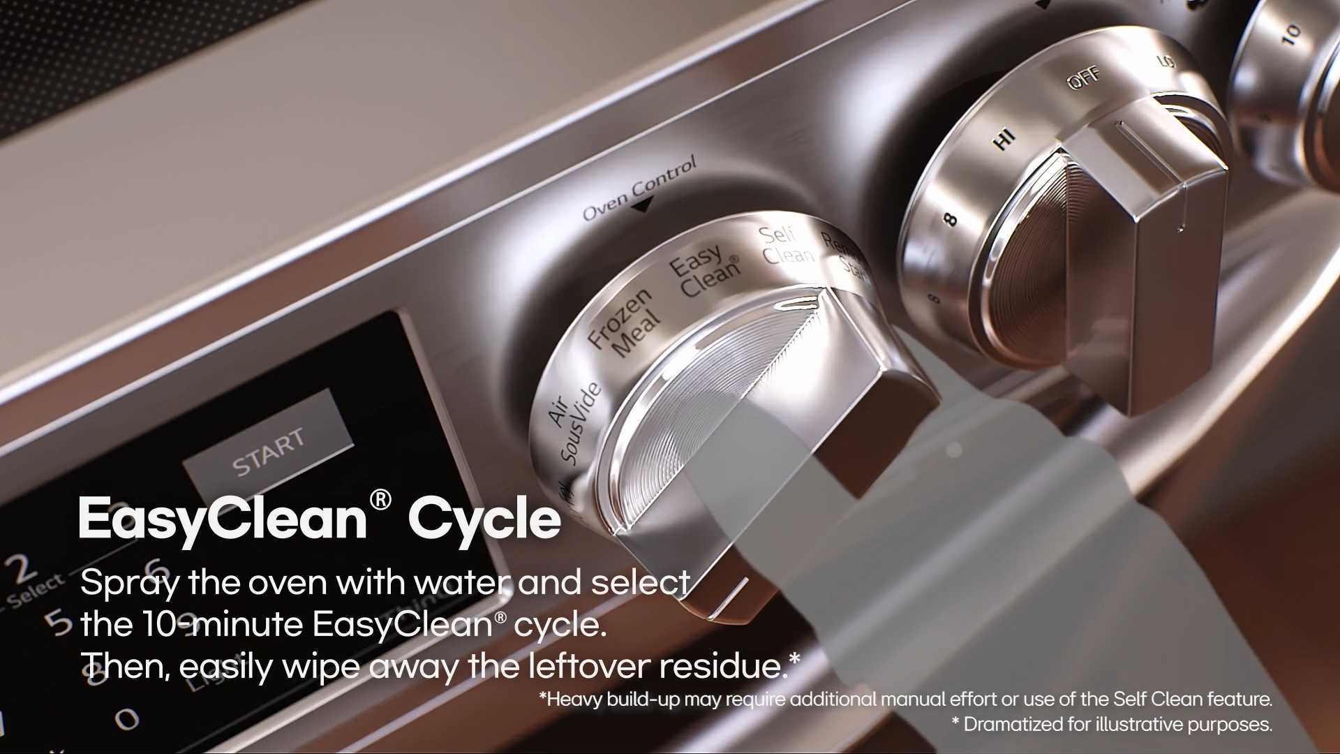 Simply spray the oven interior with water, press the EasyClean® button, and let the oven do the work in just 10 minutes—without chemicals or high-heat. Then, easily wipe away the leftover residue.